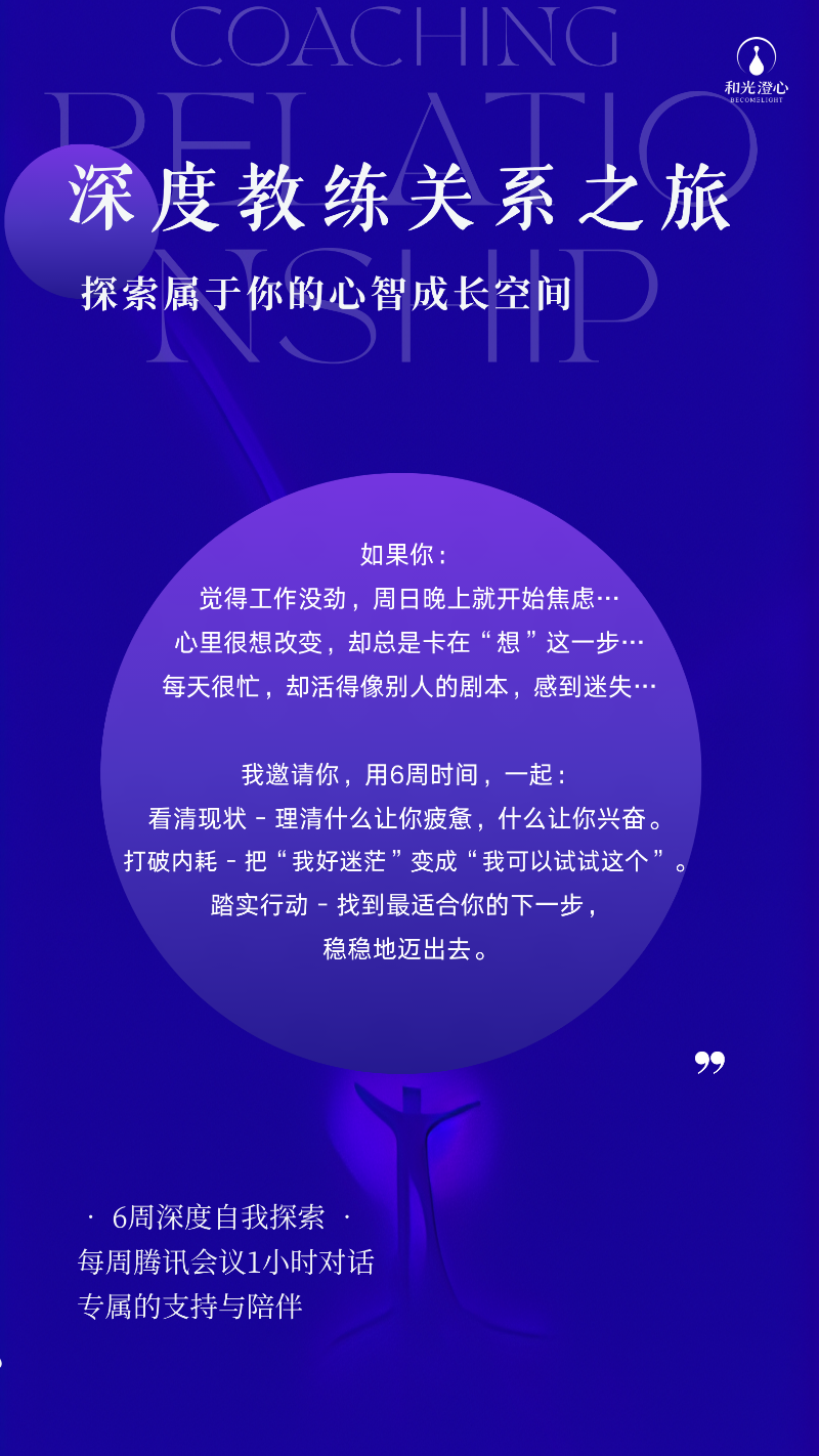 2.「和光共行」教练:定制 1v1「教练」成⻓计划,陪伴你用每次一小时的一对一对话方式,将潜能转化为外在成果